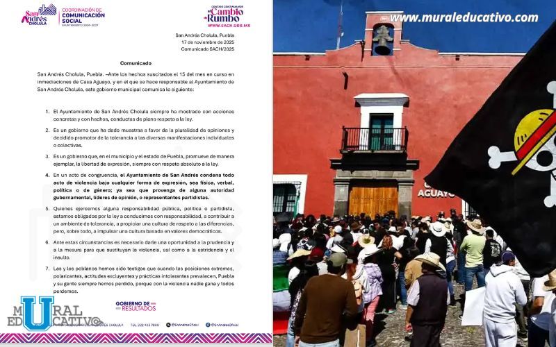 Mediante un comunicado de prensa el Ayuntamiento de San Andrés Cholula, reitera el respecto a la Ley y la pluralidad y hace las siguientes precisiones ante los hechos suscitados en las inmediaciones de Casa Aguayo.