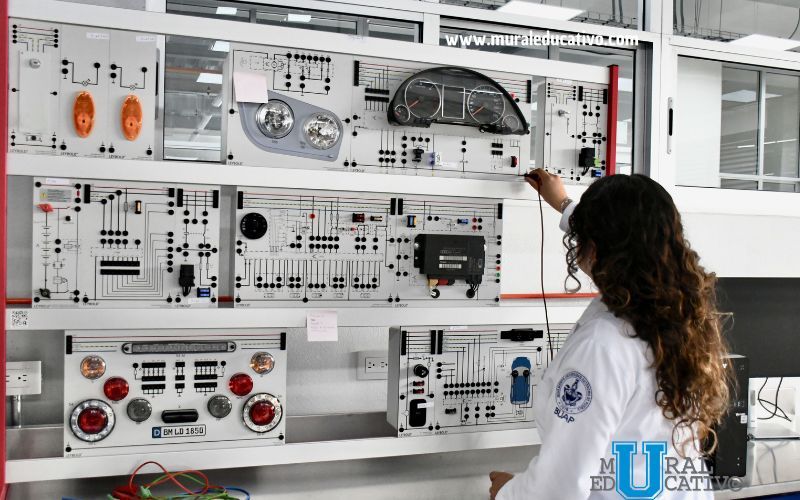 Entre estos recursos sobresale una cabina de extracción de gases importada de Alemania, completamente automática y con filtros de alta precisión que aseguran una operación segura para los usuarios. En el Laboratorio Automotriz, los estudiantes disponen de dispositivos de monitoreo de partículas, pantallas térmicas y monitores para el análisis en tiempo real de emisiones y funcionamiento vehicular.