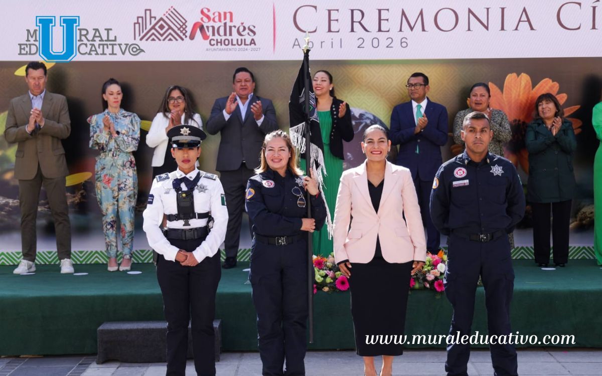 San Andrés Cholula, Puebla.–  Como parte de las actividades cívicas de abril, la presidenta municipal, Lupita Cuautle, encabezó la ceremonia de honores a la bandera, con la participación de integrantes del Cabildo, servidoras y servidores públicos. En el acto se conmemoraron fechas relevantes del mes.