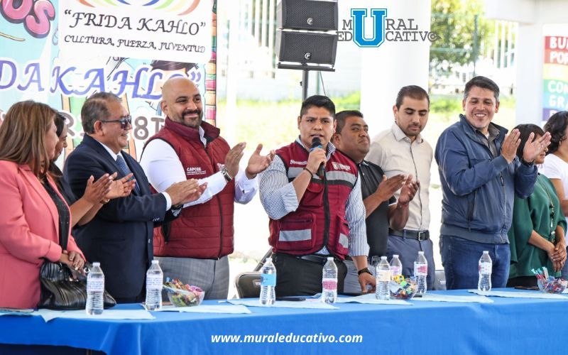 Cuautlancingo, Puebla. – El presidente municipal de Cuautlancingo, Omar Muñoz, y el director del Comité Administrador Poblano para la Construcción de Espacios Educativos (CAPCEE), Carlos Ochoa Rodríguez, entregaron el arco techo de la primaria de la Unidad Educativa Frida Kahlo.