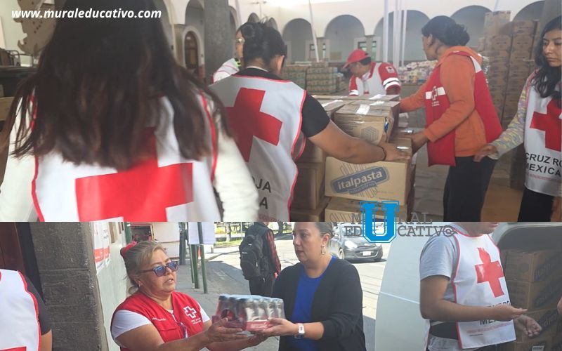 Mientras tanto en la Delegación de Cruz Roja Puebla, la Directora Ejecutiva de la FGCM, Maestra, Mayra Fritsche García, acudió a las oficinas para realizar la donación de las despensas que recibió la Licenciada Gisela Gutiérrez Ortíz, asistente de la delegada Paula Saukko de Murrieta.