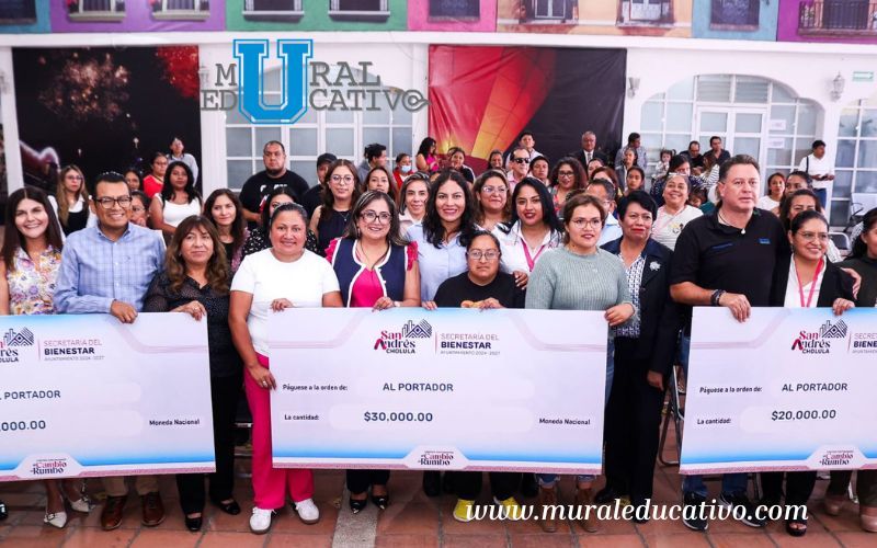 San Andrés Cholula, Puebla.— Lupita Cuautle, presidenta municipal, encabezó la entrega de apoyos económicos a instituciones educativas, con el fin de contribuir a la mejora en equipamiento e infraestructura.