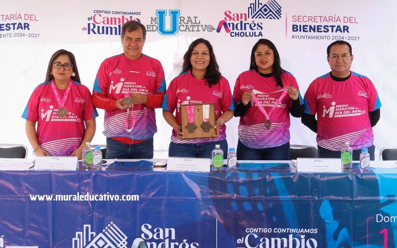 San Andrés Cholula, Puebla. – Con el propósito de integrar a toda la población del municipio a la práctica del deporte y la convivencia sana, la presidenta Lupita Cuautle Torres encabezó la presentación de la playera y la medalla del Medio Mataron del Día del Papá, a celebrarse el próximo 15 de junio a partir de las 6:00 a.m.