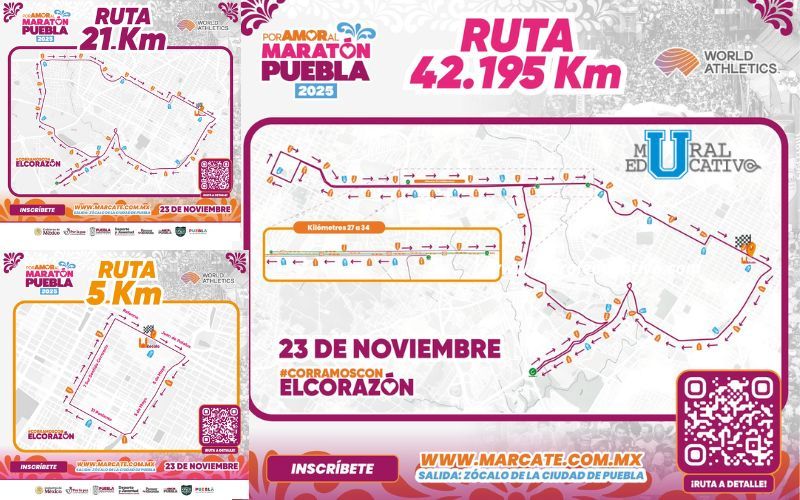 El subsecretario de Deporte, Mauricio García, explicó que las cuatro categorías partirán del Zócalo de Puebla, las y los competidores recorrerán las principales calles de la ciudad como es Juan de Palafox y Mendoza, Boulevard 5 de Mayo, Circuito Juan Pablo II, Avenida Juárez, Calzada Zavaleta, Vía Atlixcáyotl y Recta a Cholula.