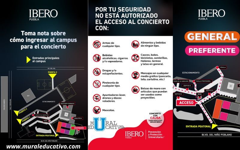 Quienes tienen boletos en las zonas GRAN VIP y VIP podrán encontrar su puerta de acceso entre el edificio A y la Biblioteca Interactiva Pedro Arrupe, SJ, mientras que la entrada a las zonas Preferente y General se encuentra en el lobby de los edificios B y C. Debes llevar tu boleto en mano y pasar por los filtros de seguridad para poder acceder al evento.