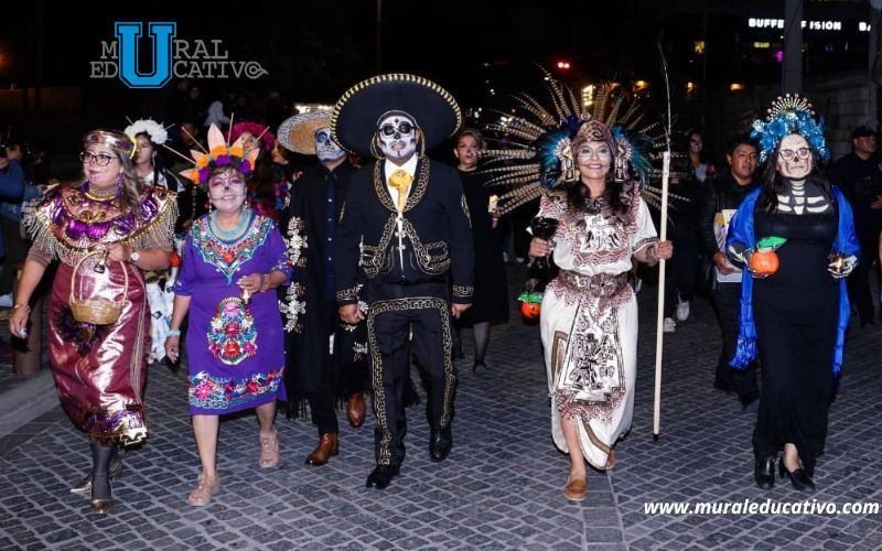 San Andrés Cholula, Puebla. – En el marco del Festival del Día de Muertos, la presidenta municipal Lupita Cuautle Torres encabezó el Carnaval Camino al Mictlán con más que reunió a más de mil 200 participantes en un recorrido lleno de color, música y tradición.