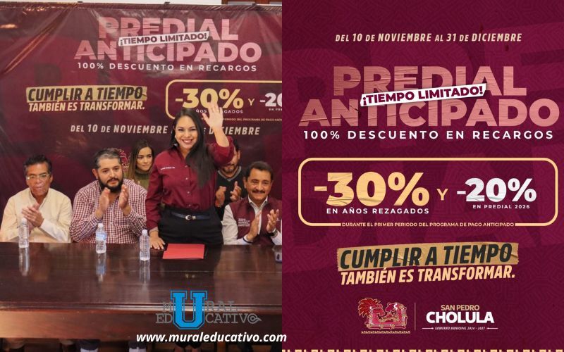 San Pedro Cholula, Puebla. – Con el propósito de fomentar la responsabilidad ciudadana y fortalecer las finanzas municipales, la presidenta de San Pedro Cholula, Tonantzin Fernández, presentó los estímulos fiscales a través de descuentos aplicables al pago del impuesto Predial anticipado.